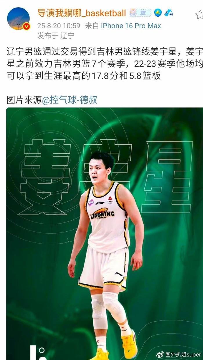 张镇麟会走吗?8月20日,辽宁男篮官宣的一笔交易也是引发了很多球迷的关注,因为在很多球迷的心目中,交易来到的这个小前锋国手的位置和张镇麟还是有一些重叠的。辽宁男篮交易来了谁呢?根据知名篮球媒体人“导演我躺那”的报道,辽宁男篮这边通过交易的运作得到了吉林男篮的国手级前锋姜宇星。